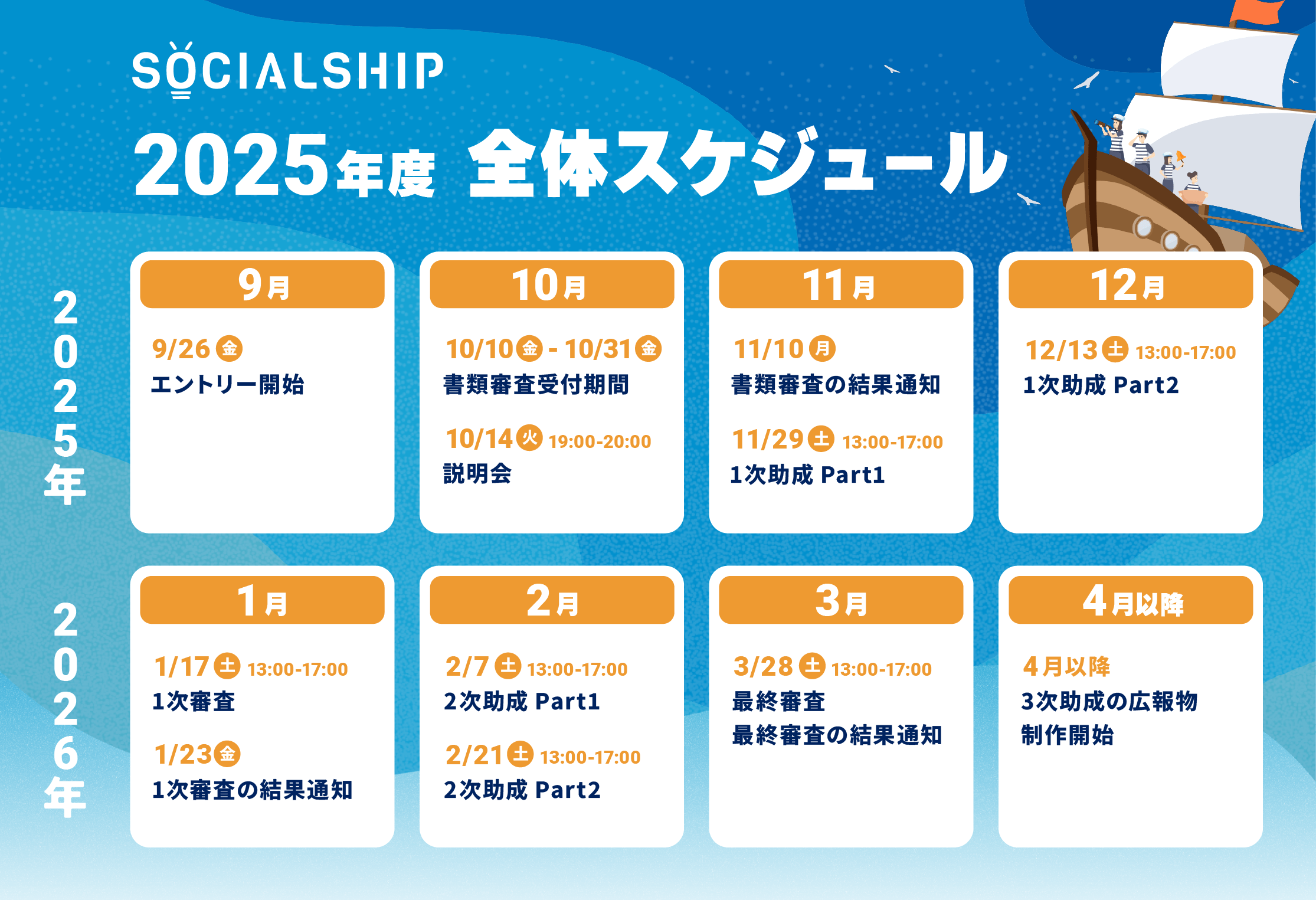 SOCIALSHIPは、非営利団体の広報をサポートする助成プログラム。 団体の魅力を自分たちの言葉で整理し、ファンドレイジングの戦略にもとづいて発信することで、 応援される広報ができる状態を目指します。